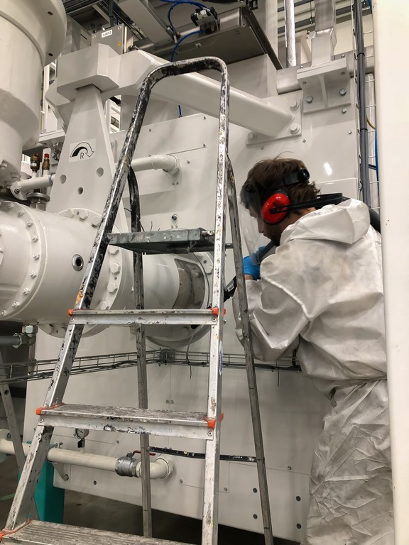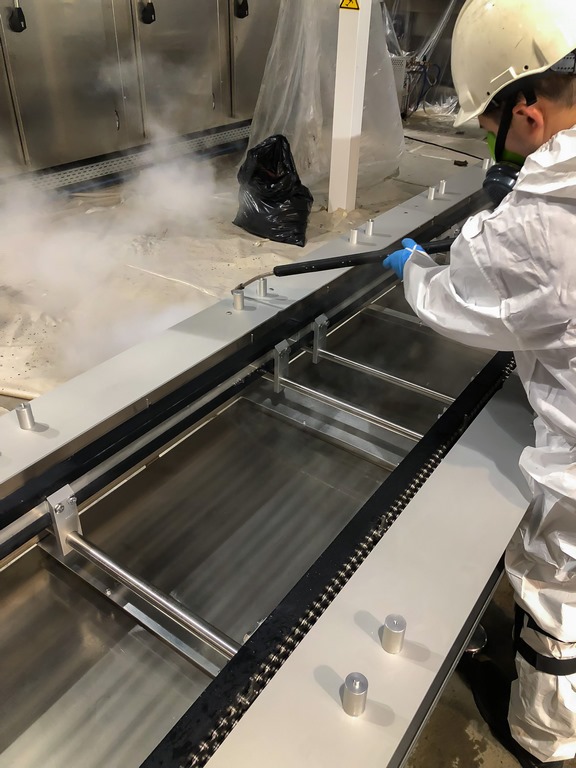 darbu eiga bmsbaltic 300x400Vissarežģītākā bija elektronikas tīrīšana, bija svarīgi visu izdarīt precīzi un pareizi. Mēs palūdzām mūsu spāņu kolēģu palīdzību,par cik viņiem ir liela pieredze elektronikas tīrīšanā. No Spānijas mums tika piegādāts papildus aprīkojums. Elektriskie vairogi, dažāda tipa motori, nepārtrauktas elektropadeves avoti, augstsprieguma vairogi, aprīkojums ar iebūvētu automātiku - tas viss bija jāattīra. Daži vairogi un elektronika bija jātīra zem sprieguma. Darba pro-cesā tika konstatētas dažas detaļas, kuras turpmākajā ekspluatācijas laikā varētu izraisīt iekārtas darbības traucējumus. Pasūtītājs tās nomainīja un tika likvidētas problēmas turpmākajā ražošanas procesā.