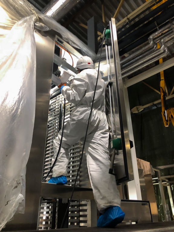 Arī mūsu komanda izbrauca uz notikuma vietu, lai veiktu rūpīgu apskati. Tika paņemti ķīmiskie paraugi, un tika konstatēts, ka hlorīdu saturs pārsniedz pieļaujamo normu. Mūsu speciālisti paskaidroja pasūtītājam, kādas darbības un kādas tehnoloģijas mēs piedāvājam, veicot darbus. Mēs piedāvājām iekārtu atjaunošanu bez demontāžas, kā notiks telpu tīrīšana un galvenais, kā notiks iekārtu un visas elektronikas atjaunošana, jo tā ir pārtikas rūpniecības fabrika, šeit nevar piemērot parastās tīrīšanas metodes.